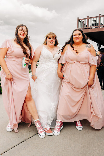 Consider having a pair of cute sneakers, Converse, or comfy flats on hand for dancing. Not only will they let you enjoy the party without sore feet, but they also make for fun, playful photos as you kick up your heels on the dance floor!